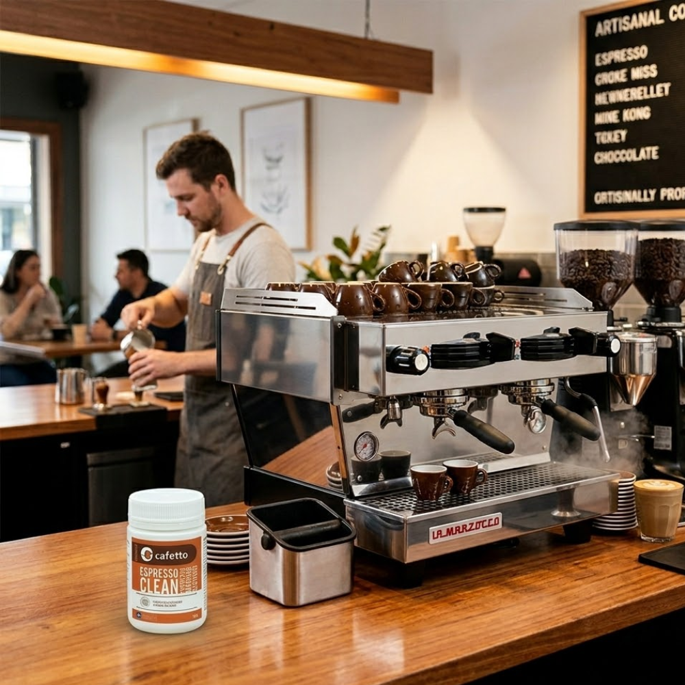 Cafetto Espresso Machine Cleaning Powder is a 1kg tub designed for deep cleaning espresso machines and coffee equipment. Its powerful formula removes coffee oils, residues, and deposits, maintaining hygiene and machine efficiency. Suitable for commercial coffee shops and high-volume catering operations.